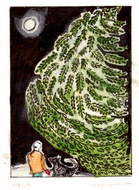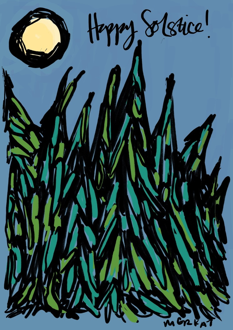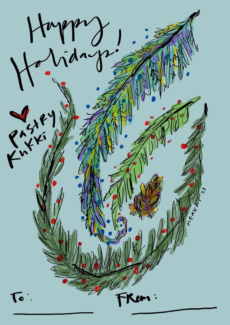 I struggled and continue to struggle with the notion of using living trees and putting more new “things” into the world, but after being inundated by the growing glut of AI-generated images in the public sphere, I was motivated to take the leap into the greeting cards project—both to add to and amplify the presence of real human artists offering original, functional art to the world, and as a form of resistance to AI’s influence on the environment, culture, and the manner in which we interact and communicate with one another as living, breathing beings.