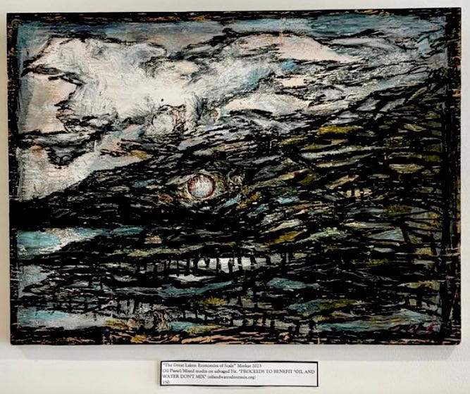 My debut solo art show, “Wild Imagination,” took place in September 2024 and included original mixed-media works inspired by the Great Lakes Watershed and created with salavaged and eco-friendly materials.